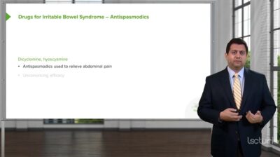 Antispasmodics are a group of medications used to reduce excessive GI smooth muscle contractility and spasm. These medications may be helpful in those with abdominal pain Abdominal Pain Acute Abdomen due to conditions such as irritable bowel syndrome Irritable bowel syndrome Irritable bowel syndrome (IBS) is a functional bowel disease characterized by chronic abdominal pain and altered bowel habits without an identifiable organic cause. The etiology and pathophysiology of this disease are not well understood, and there are many factors that may contribute. Irritable Bowel Syndrome, although their efficacy is controversial. Antispasmodics are classified based on their action; they include anticholinergics Anticholinergics Anticholinergic drugs block the effect of the neurotransmitter acetylcholine at the muscarinic receptors in the central and peripheral nervous systems. Anticholinergic agents inhibit the parasympathetic nervous system, resulting in effects on the smooth muscle in the respiratory tract, vascular system, urinary tract, GI tract, and pupils of the eyes. Anticholinergic Drugs and direct smooth muscle relaxants. Anticholinergics Anticholinergics Anticholinergic drugs block the effect of the neurotransmitter acetylcholine at the muscarinic receptors in the central and peripheral nervous systems. Anticholinergic agents inhibit the parasympathetic nervous system, resulting in effects on the smooth muscle in the respiratory tract, vascular system, urinary tract, GI tract, and pupils of the eyes. Anticholinergic Drugs block muscarinic receptor Receptor Receptors are proteins located either on the surface of or within a cell that can bind to signaling molecules known as ligands (e.g., hormones) and cause some type of response within the cell. Receptors activity in the enteric nervous system Enteric nervous system Two ganglionated neural plexuses in the gut wall which form one of the three major divisions of the autonomic nervous system. The enteric nervous system innervates the gastrointestinal tract, the pancreas, and the gallbladder. It contains sensory neurons, interneurons, and motor neurons. Thus the circuitry can autonomously sense the tension and the chemical environment in the gut and regulate blood vessel tone, motility, secretions, and fluid transport. The system is itself governed by the central nervous system and receives both parasympathetic and sympathetic innervation. Autonomic Nervous System: Anatomy and on smooth muscle cells, but can also have systemic anticholinergic Anticholinergic Anticholinergic drugs block the effect of the neurotransmitter acetylcholine at the muscarinic receptors in the central and peripheral nervous systems. Anticholinergic agents inhibit the parasympathetic nervous system, resulting in effects on the smooth muscle in the respiratory tract, vascular system, urinary tract, GI tract, and pupils of the eyes. Anticholinergic Drugs side effects (e.g., urinary retention Urinary retention Inability to empty the urinary bladder with voiding (urination). Delirium, blurred vision Blurred Vision Retinal Detachment, xerostomia Xerostomia Decreased salivary flow. Sjögren Syndrome, tachycardia Tachycardia Abnormally rapid heartbeat, usually with a heart rate above 100 beats per minute for adults. Tachycardia accompanied by disturbance in the cardiac depolarization (cardiac arrhythmia) is called tachyarrhythmia. Sepsis in Children). Direct smooth muscle relaxants have a variety of potential effects, but notably, they act directly on smooth muscle cells. These medications are not associated with anticholinergic Anticholinergic Anticholinergic drugs block the effect of the neurotransmitter acetylcholine at the muscarinic receptors in the central and peripheral nervous systems. Anticholinergic agents inhibit the parasympathetic nervous system, resulting in effects on the smooth muscle in the respiratory tract, vascular system, urinary tract, GI tract, and pupils of the eyes. Anticholinergic Drugs side effects.